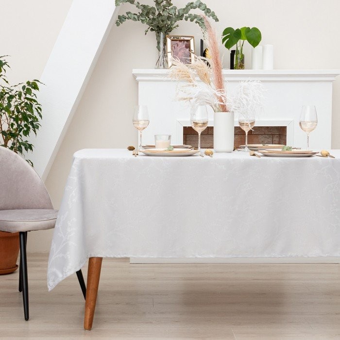 Скатерть Этель «Ветвь» цв.серебро, 142*180 +/-3 см, 115 ±10 гр,100% п/э