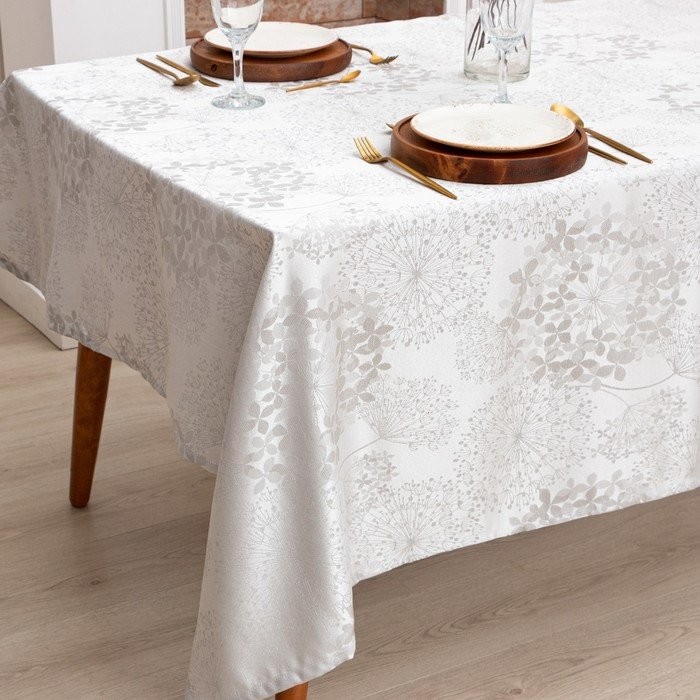 Скатерть Этель «Flowers» цв.серебро, 142*283 +/-3 см, 115 ±10 гр,100% п/э