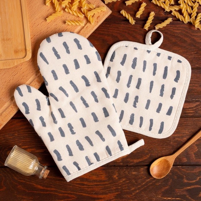 Кухонный набор (2 предмета) Доляна «Тенденция», цвет серый, прихватка 17×17 см, варежка 26×16 см, 100% п/э