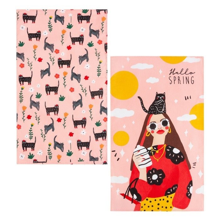 Набор кухонных полотенец Доляна Hello spring 35х60см-2шт, 100% хл