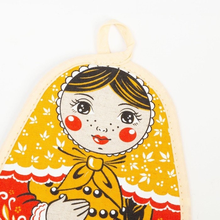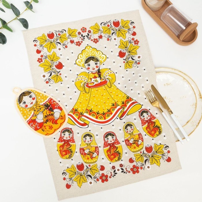 Набор кухонный Девица красавица-хохлома полотенце 45×60 см, прихватка 19×16 см, полулен,