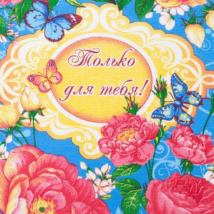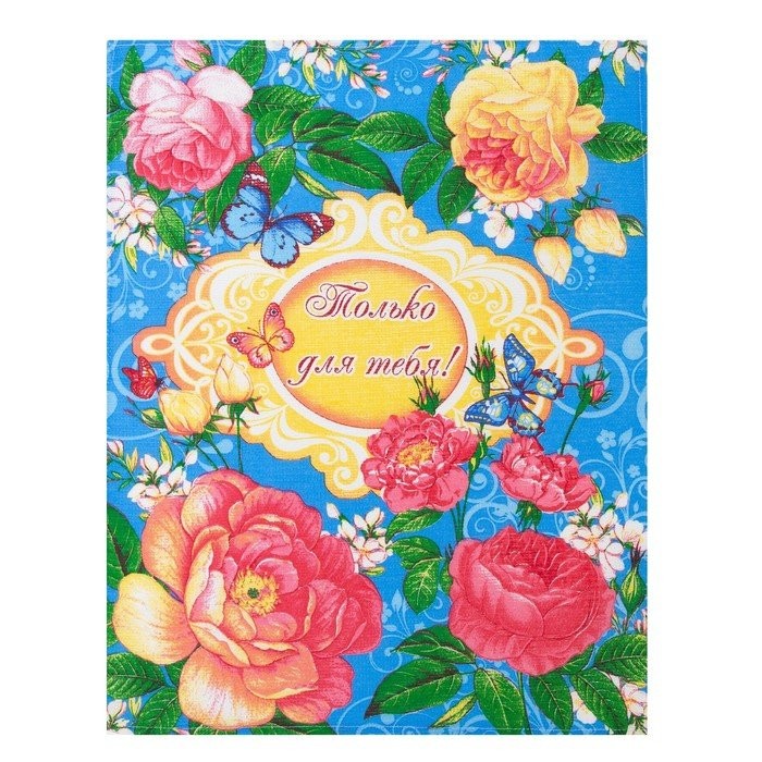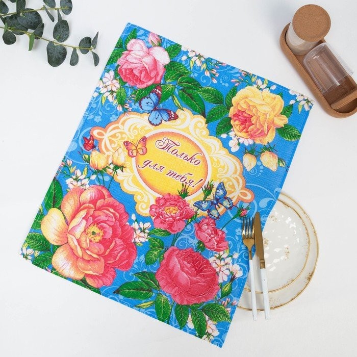 Полотенце 45×60 см, Английская роза, голубой, вафля, 160 гр/м2, хлопок 100%