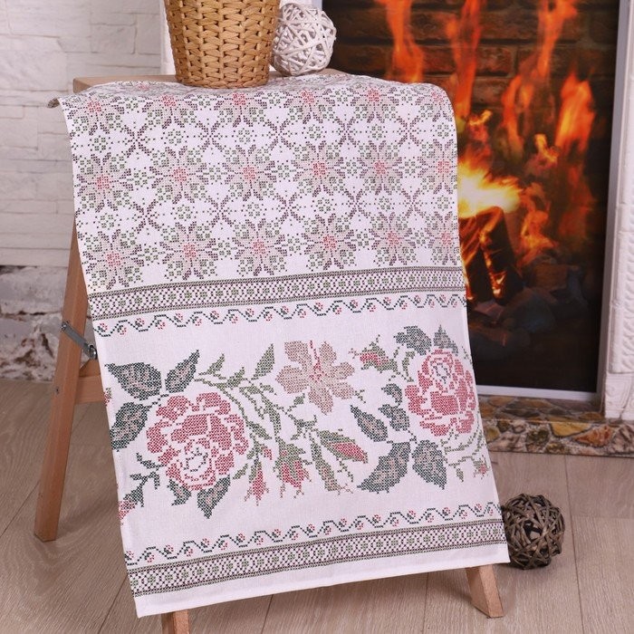 Полотенце 50×70 см, Розочки, рогожка, 170 гр/м2, хлопок 100%
