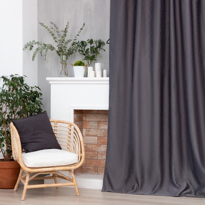 Штора портьерная Этель «Фактура"цв.серый,на шторн.ленте 250*265 см,100% п/э