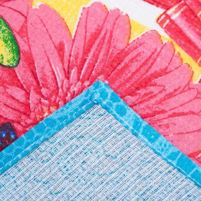 Полотенце в коробке 45×60 см, Герберы, бирюза, вафля, 160 гр/м2, хлопок 100%