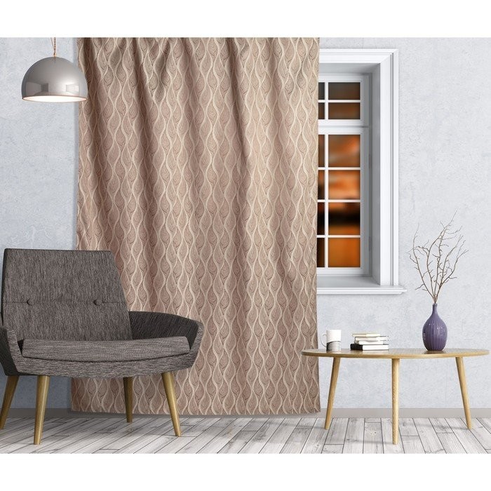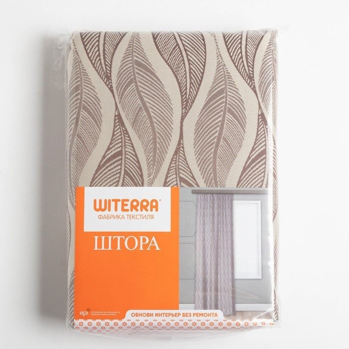 Штора портьерная Листья 160×260 см, коричневый, пэ