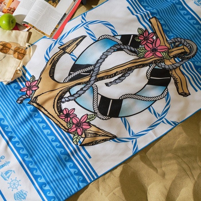 Полотенце пляжное Этель «Якорь» 75*140 см, микрофибра, 100% п/э, 230 гр/м2