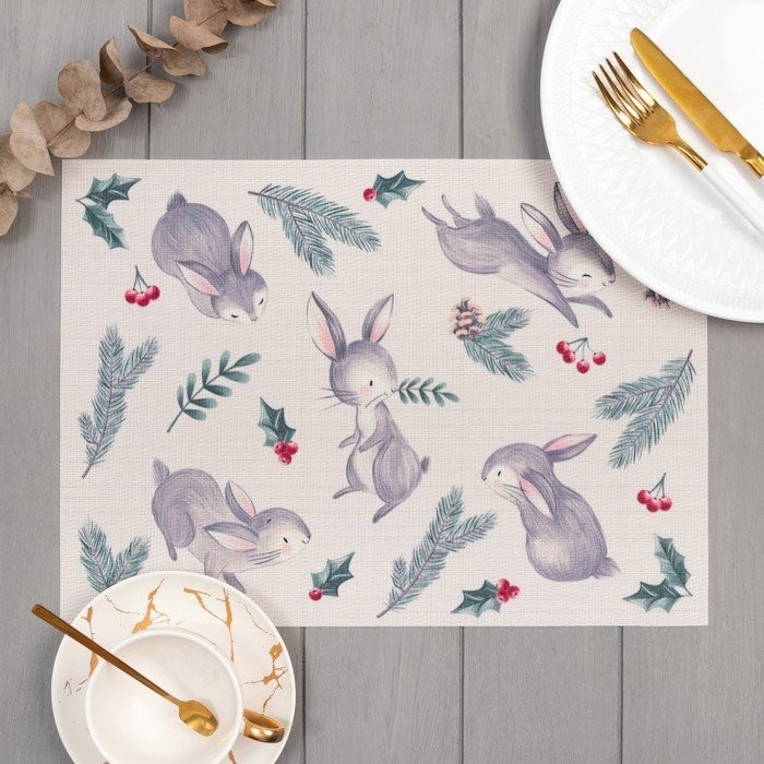 Набор салфеток на стол «Зайчата», ПВХ, 40*29 см, 2 шт