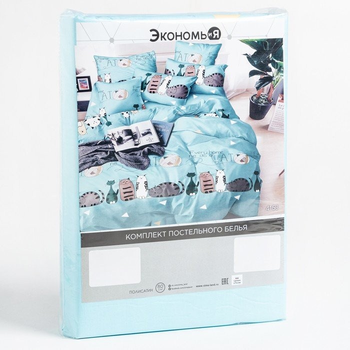 Постельное бельё Экономь и Я Евро Cats 200х210см,220х215см,70х70см-2 шт