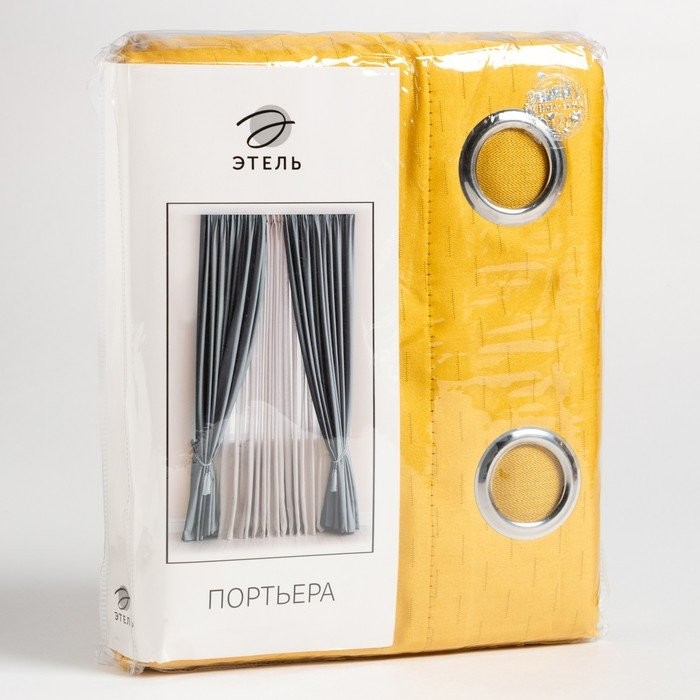 Штора портьерная Этель «Штрихи» цв.желтый,на люверсах 130*300 см, 100% п/э