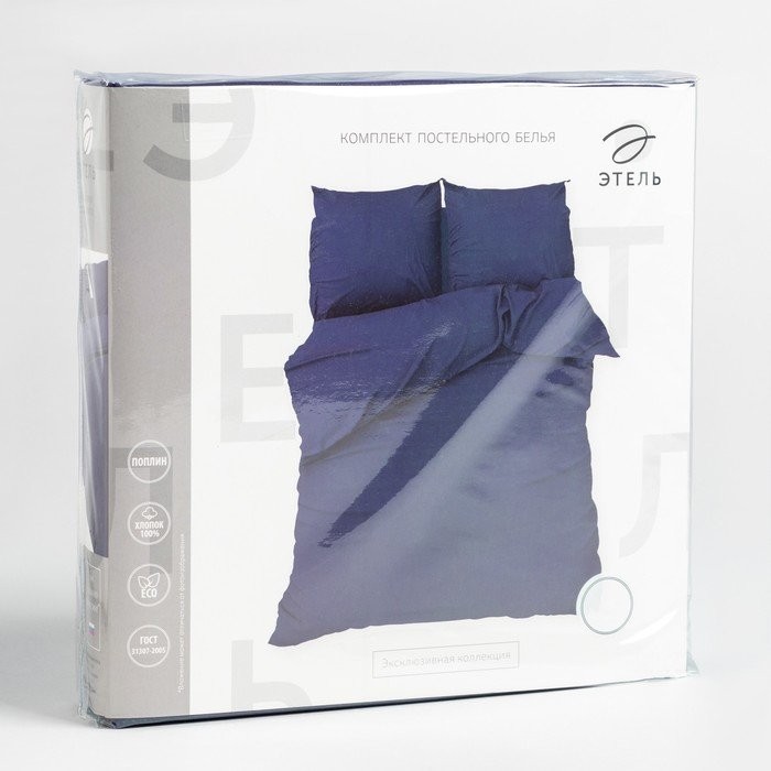 Постельное бельё Этель 1.5 цвет синий, 143*215 см, 150*214 см, 70*70 см — 2 шт, поплин