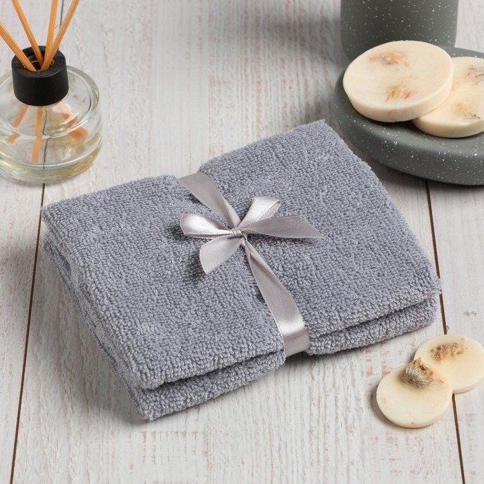 Набор махровых декоративных салфеток светло-серый, 2шт., 340 г/м2, 30×30 см