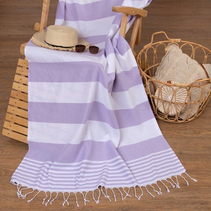 Пештемаль для пляжа, бани, сауны «Фортуна» 100×180 см, сиреневый