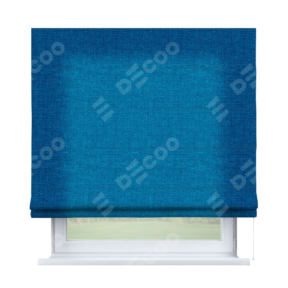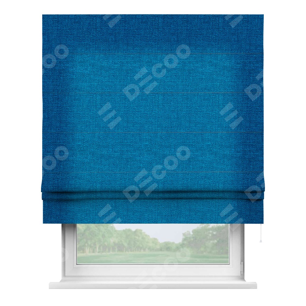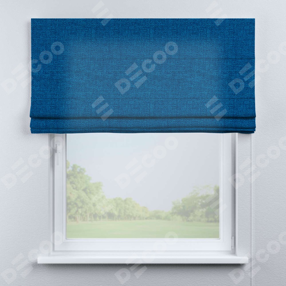 Римская штора производителя «Cortin», используется для проёма, пошита из ткани лён синий, артикул ткани 63742. Имеет универсальный механизм и подходит для монтажа: на потолок, на стену и в нишу.