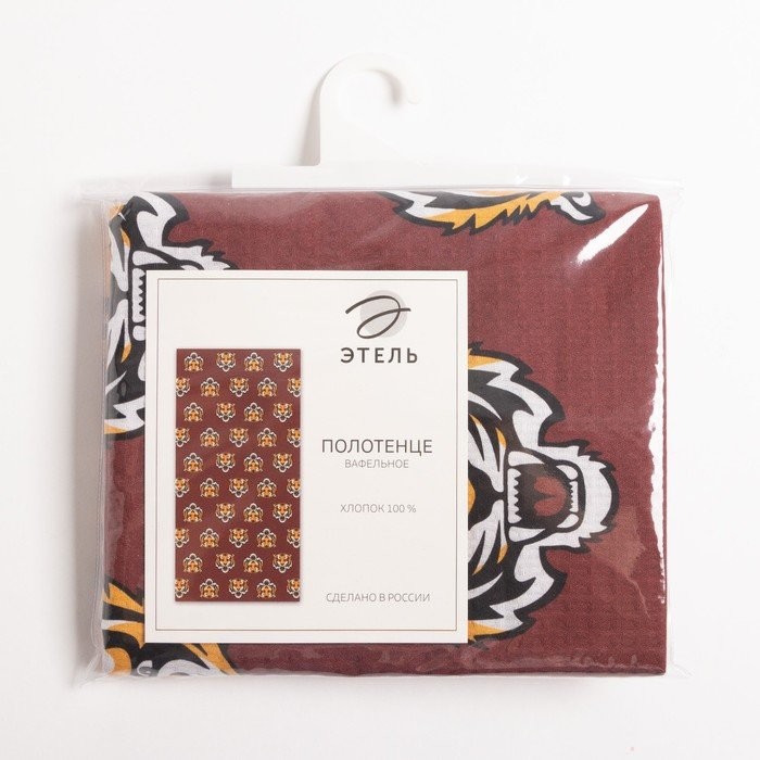 Полотенце Этель «Тигр» бордовый 70×146 см, 100% хлопок 160гр/м2
