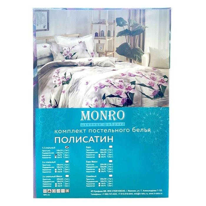 Постельное бельё Monro 1,5сп, 150×210, 150×210, 70х70см 2шт полисатин 80г/м, пэ100%