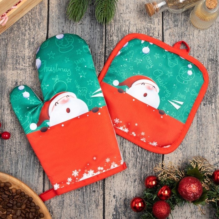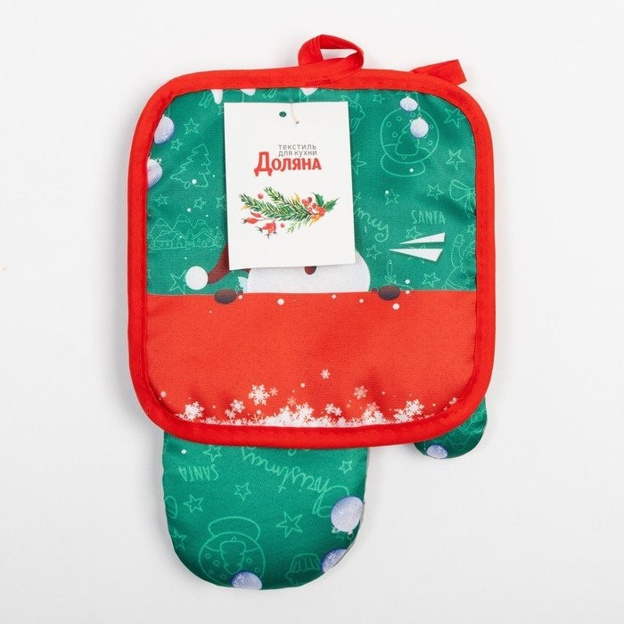 Кух. набор 2 пр. Доляна «Дед мороз» прих. 17*17 см, вареж. 26*16 см,100% п/э