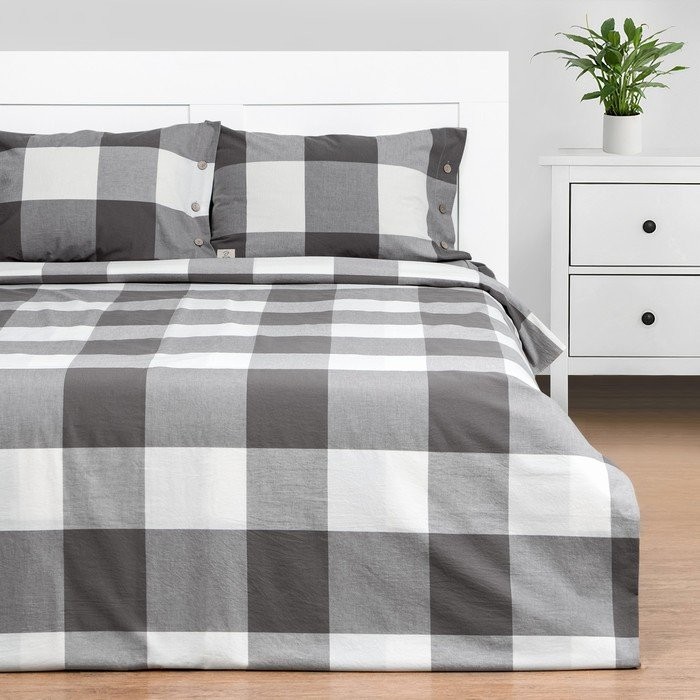 Постельное бельё Этель Евро «Серая клетка» 200×220 см, 220×240 см, 50×70−2шт,100% жатый хлопок,140гр/м2