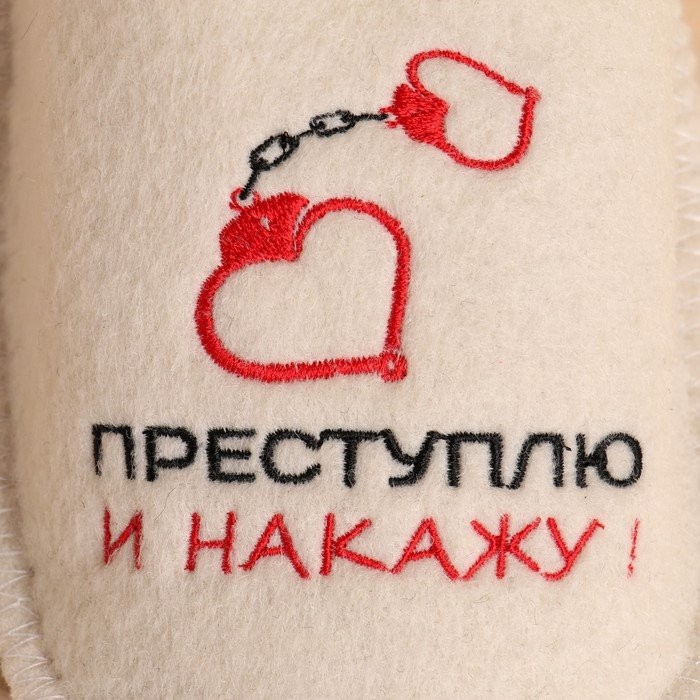 Тапочки для бани белые с вышивкой «Преступлю и накажу» женские (26 см внутр. стелька)
