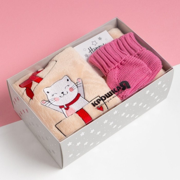 Подарочный набор Крошка Я «Кошечка», плед 90х100см, пинетки 10−12 см