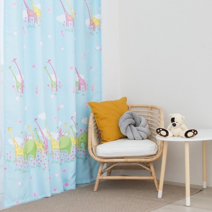 Портьера Этель «Саванна» без держателя, цвет голубой, 110×260 см, блэкаут, 100% полиэстер