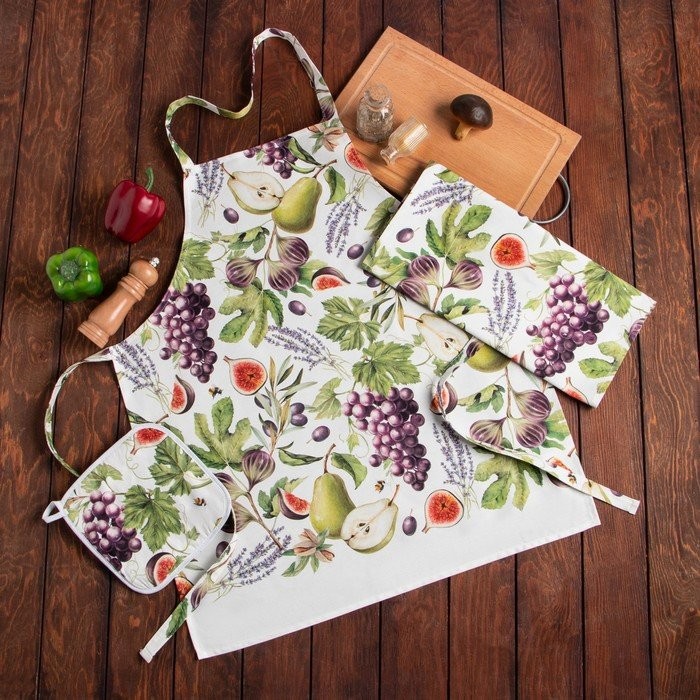 Кухонный набор Этель «Фруктовый сад», полотенце 40×73 см, прихватка 19×19 см, фартук 60×65 см