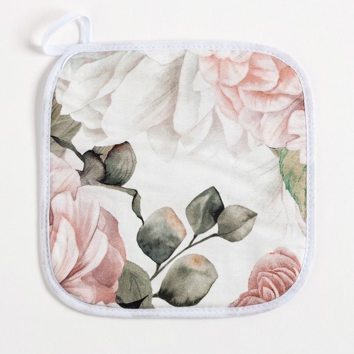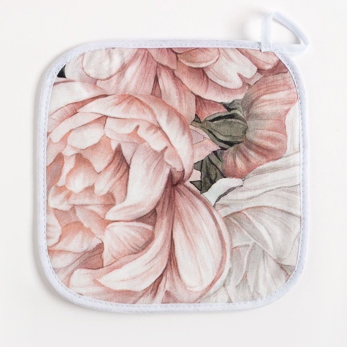 Кухонный набор Этель «Пионы», полотенце 40×73 см, прихватка 19×19 см, фартук 60×65 см