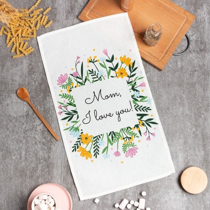 Полотенце «Доляна» Mom I love you 35×60 см, 100% хл, вафля 160 г/м2