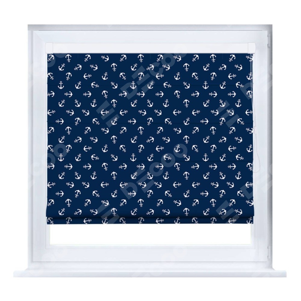 Римская штора производителя «Cortin», устанавливается на створку окна, пошита из ткани блэкаут с нанесением сублимационной печати «Морские якори». Штора шьётся по индивидуальным размерам, для данного типа римской шторы возможная ширина от 35 до 150 см., высота до 250 см.