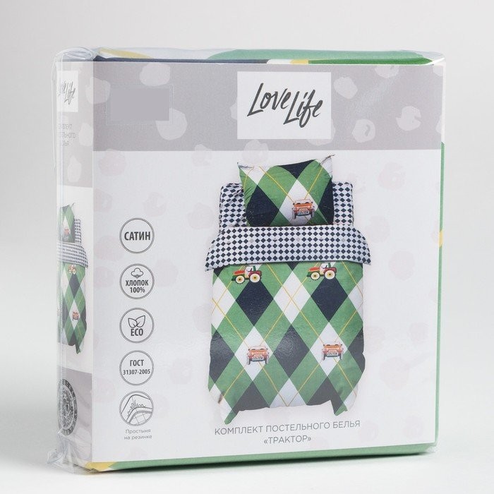Постельное бельё 1.5сп LoveLife «Трактор» 143×215 см предоставлена в следующих характеристиках: