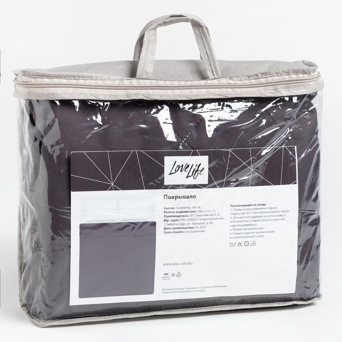 Покрывало LoveLife 2 сп 180×210±5 см, цвет темно-серый, микрофайбер, 100% п/э