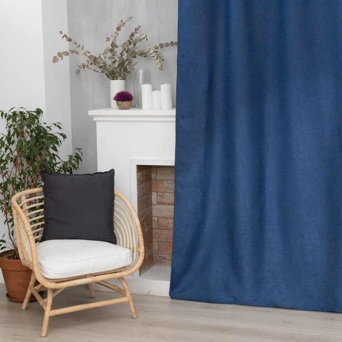 Штора портьерная Этель «Классика», цвет синий, на шторной ленте, 250×265 см, 100% п/э