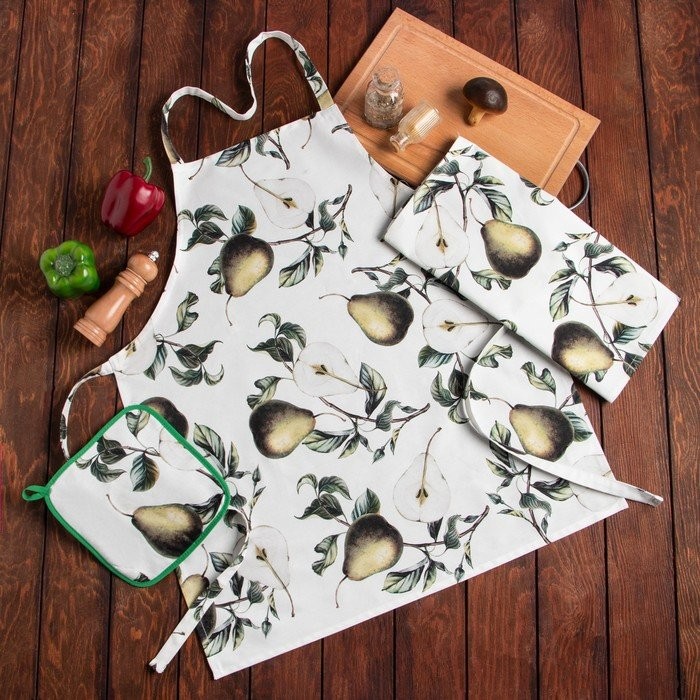 Кухонный набор Этель Груши полотенце 40×73 см, прихватка 19×19 см, фартук 60×65 см