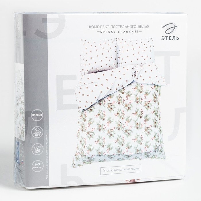 Постельное бельё Этель 2 сп Spruce branches 175×215 см, 200×220 см,70×70 см -2 шт, поплин 125 г/м2