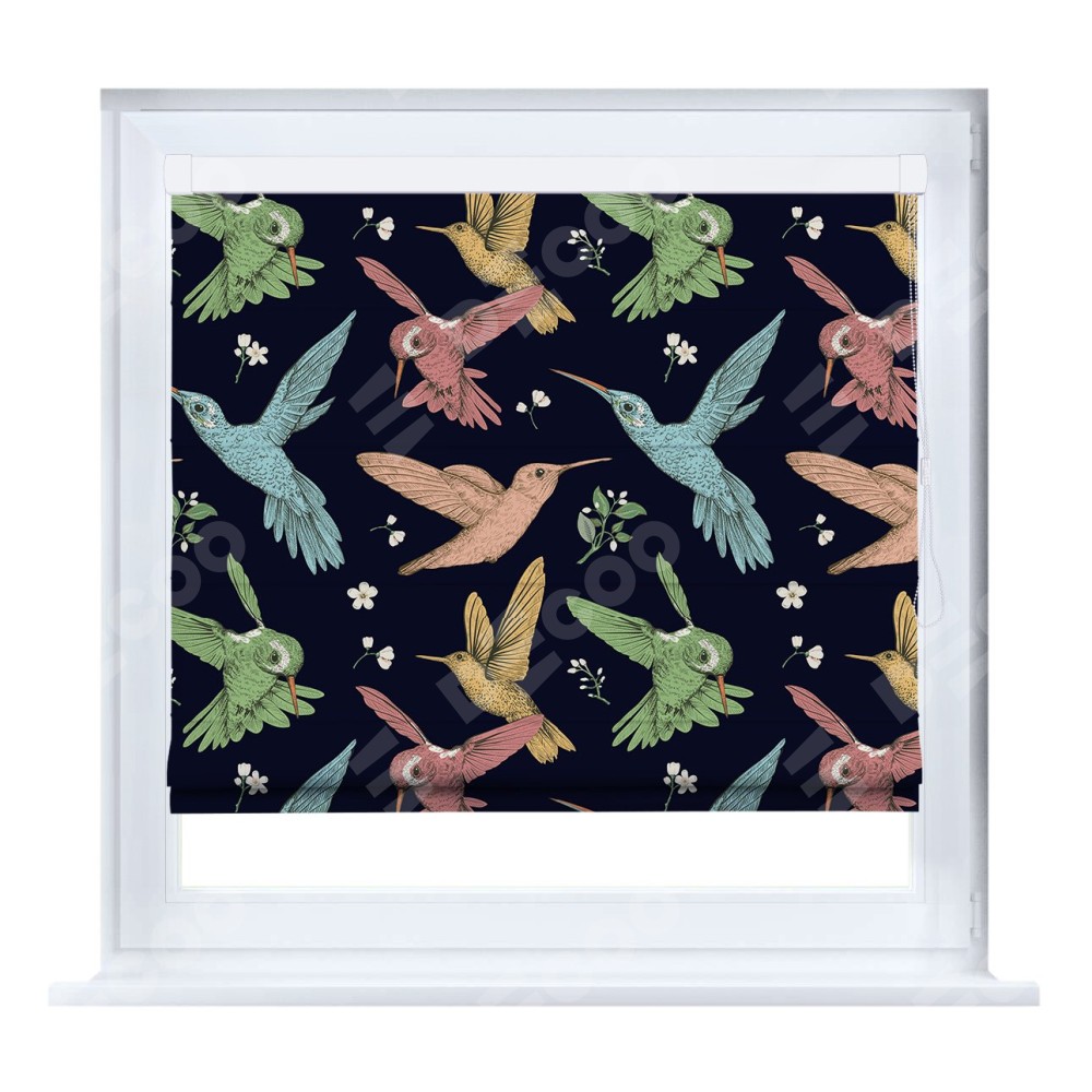 Римская штора производителя «Cortin», устанавливается на створку окна, пошита из ткани блэкаут с нанесением сублимационной печати «Птицы и цветы». Штора шьётся по индивидуальным размерам, для данного типа римской шторы возможная ширина от 35 до 150 см., высота до 250 см.