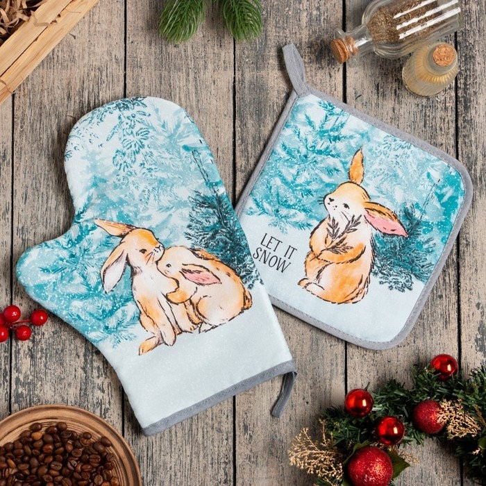 Набор кух. «Let it snow» варежка-прихватка 20×28 см, прихватка 19×19 см, 100% хл