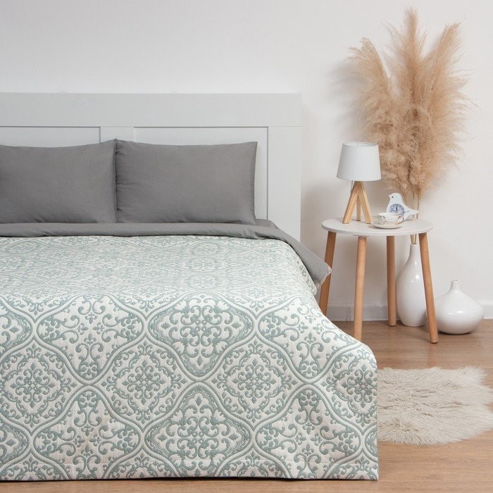 Покрывало хлопковое Этель «Орнамент» 150×240 см, цвет зелёный, 100% хлопок, 300гр/м2