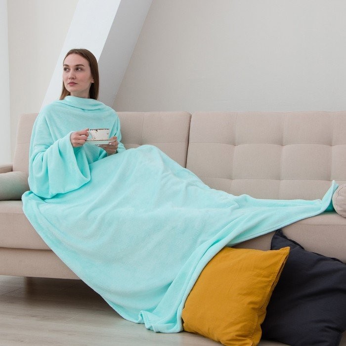 Плед с рукавами «Этель»,150*200 см, 30×50 см, мятный, 100% п/э