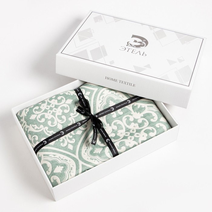 Покрывало хлопковое Этель «Орнамент» 180×240 см, цвет зелёный, 100% хлопок, 300гр/м2