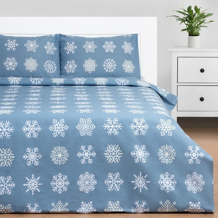 Комплект: пододеяльник и 2 наволочки «Снежинки» 143×215 см отлично подойдёт для спальни в стиле: современный.