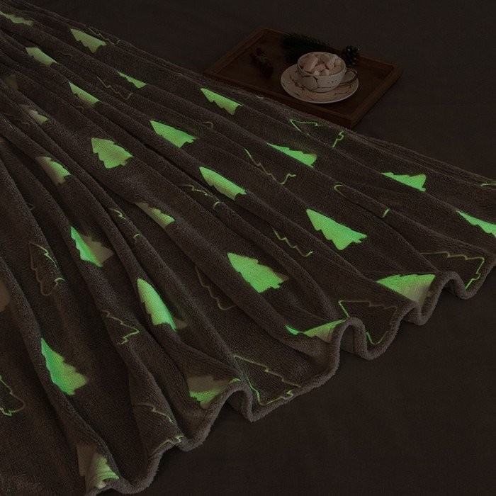 Плед светящийся в темноте Этель «Елочки» 200*220 см,100% п/э, корал-флис 220 гр/м2