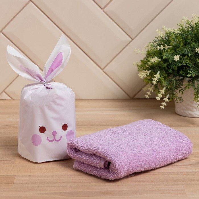 Полотенце в мешочке Экономь и Я «Зайчик сиреневый» 30*60 см, 100% хлопок, 320 гр/м2