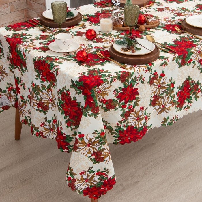 Скатерть Доляна «Новогодние украшения» 145×180 см, 100% п/э