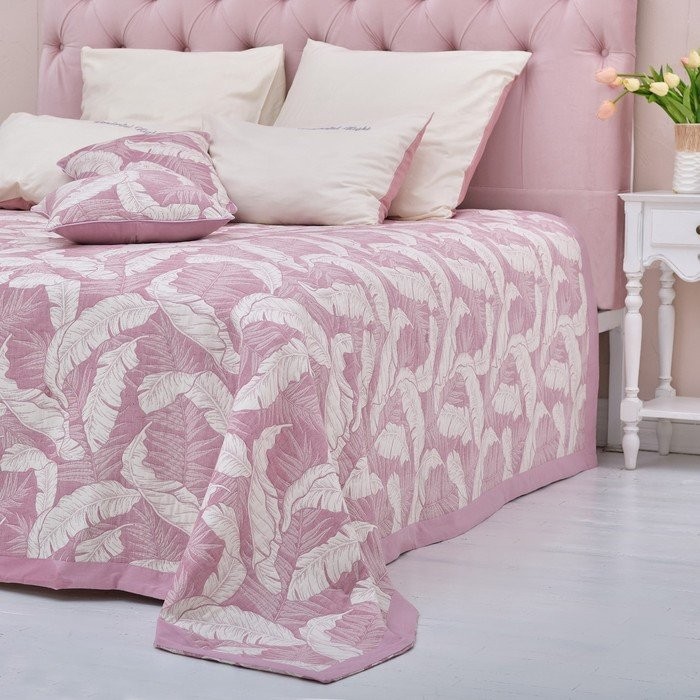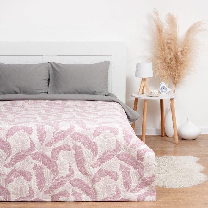 Покрывало хлопковое Этель «Перья» 180×240 см, цвет фиолетовый, 100% хлопок, 300гр/м2