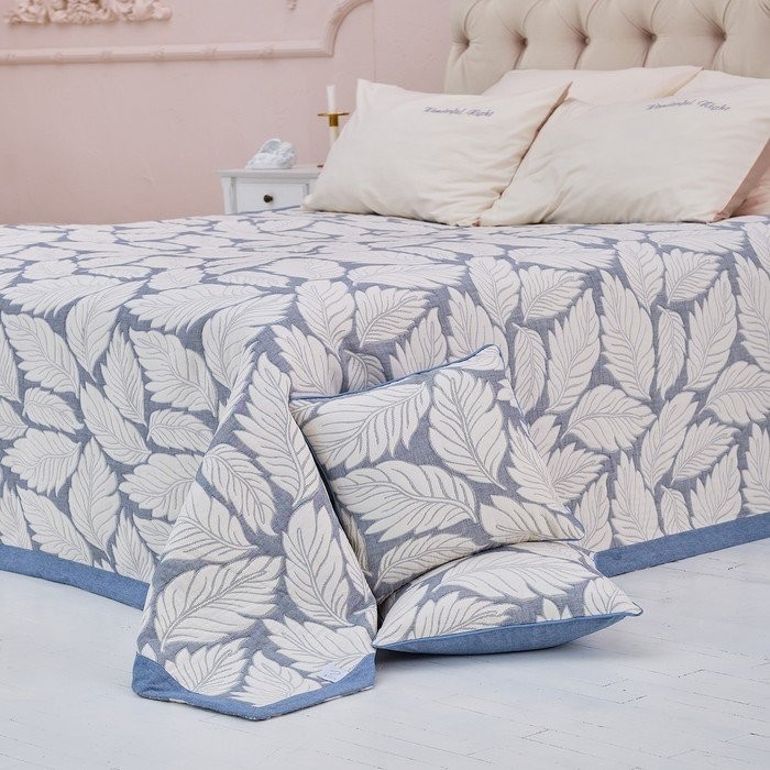 Покрывало хлопковое Этель «Листопад» 180×240 см, цвет синий, 100% хлопок, 300гр/м2