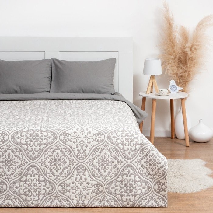 Покрывало хлопковое Этель «Орнамент» 180×240 см, цвет серый, 100% хлопок, 300гр/м2