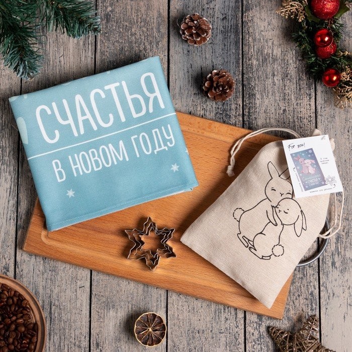Набор в мешочке Этель Family happiness: полотенце 40×73 см, формочки для запекания — 3 шт.