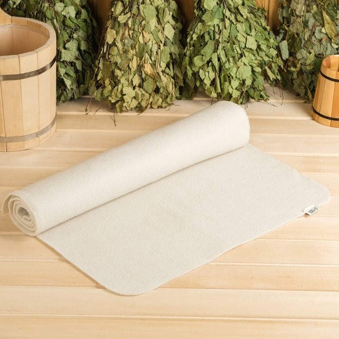 Лежак банный, войлок, 200×60 см без вышивки, белый
