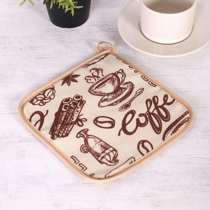 Прихватка 18×18 см, Эспрессо, рогожка, 100% хлопок