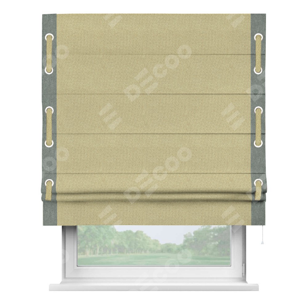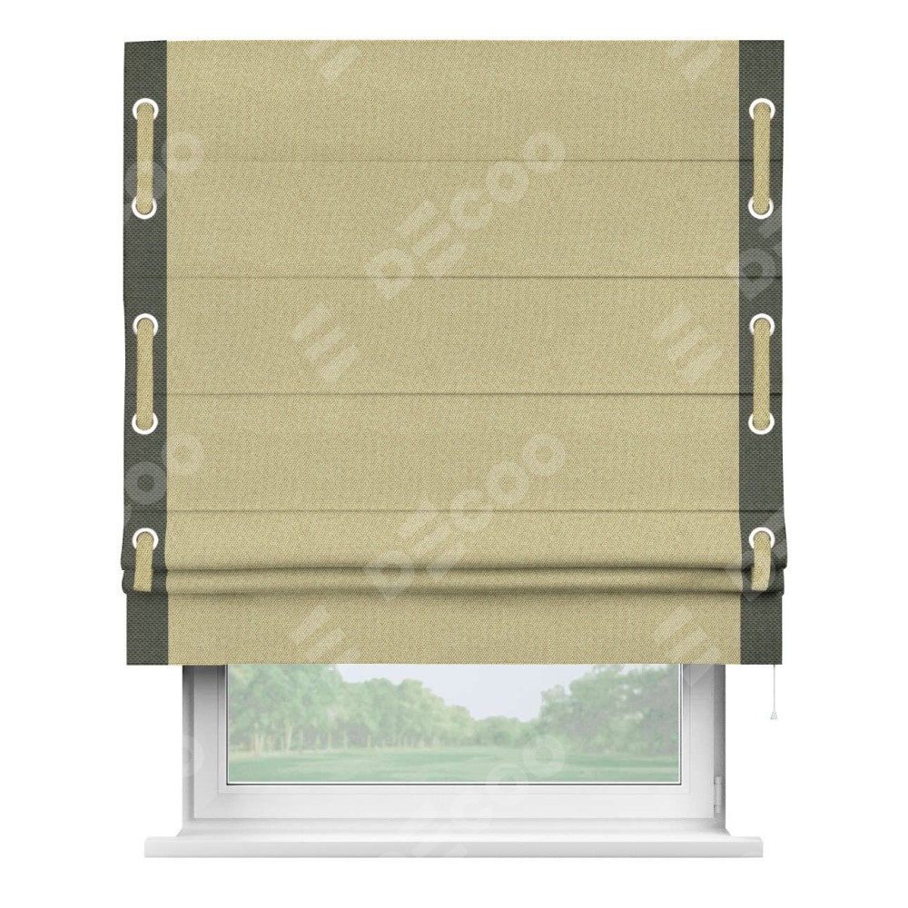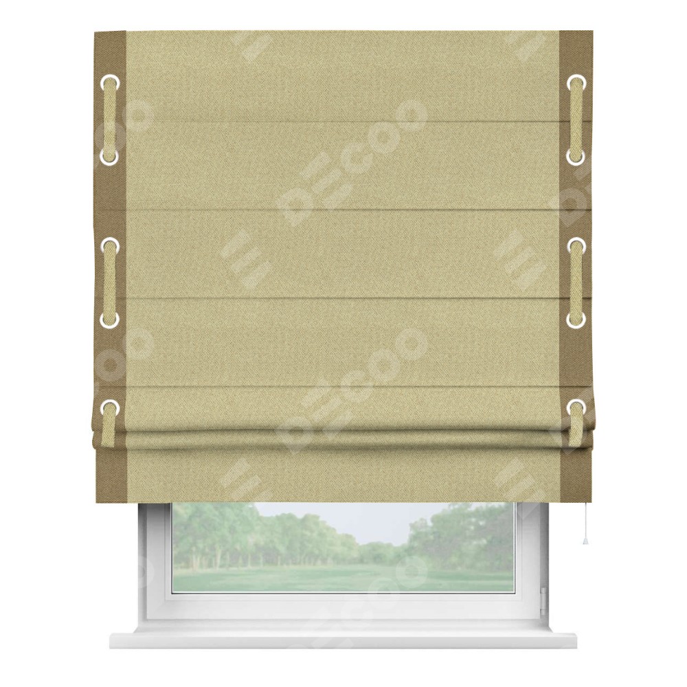 Римская штора «Кортин» с кантом Стрим Дуо (люверсы с пояском), для проема, ткань лён димаут, песочный